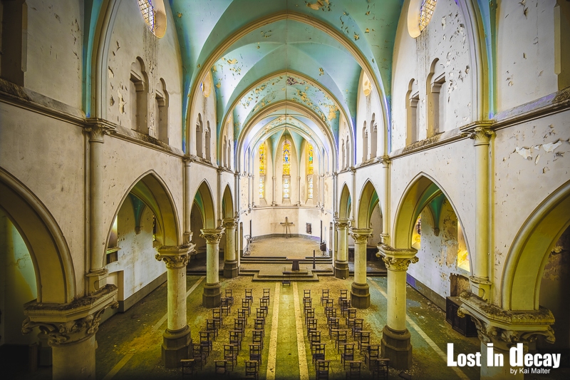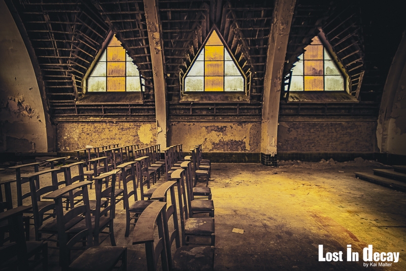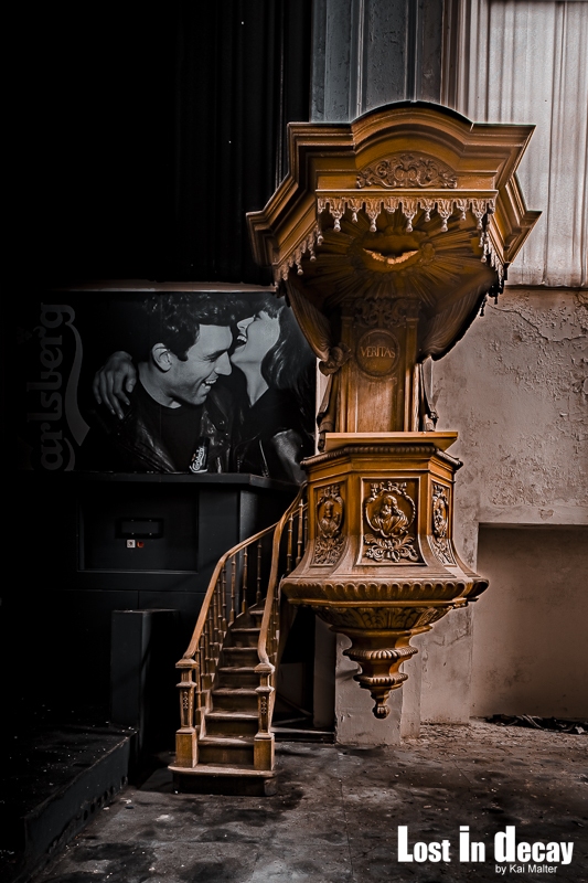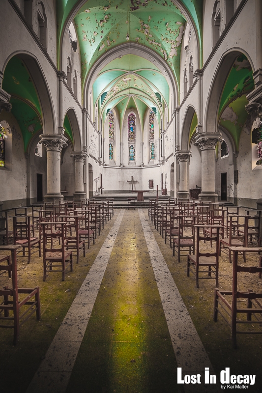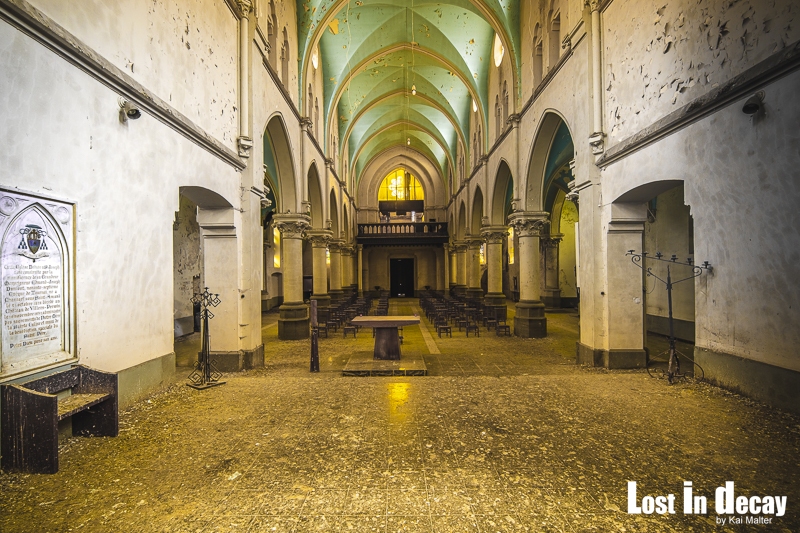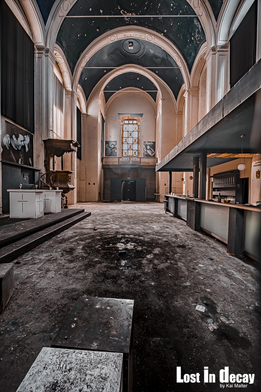 Diese imposante und vor allem grosse Kirche fand zuletzt Nutzung als Diskothek für ausgelassene Feiern.Mittlerweile hat die Kirche durch einen Brand deutlich an Halt verloren und fällt sicher alsbald dem Abriss zum Opfer.